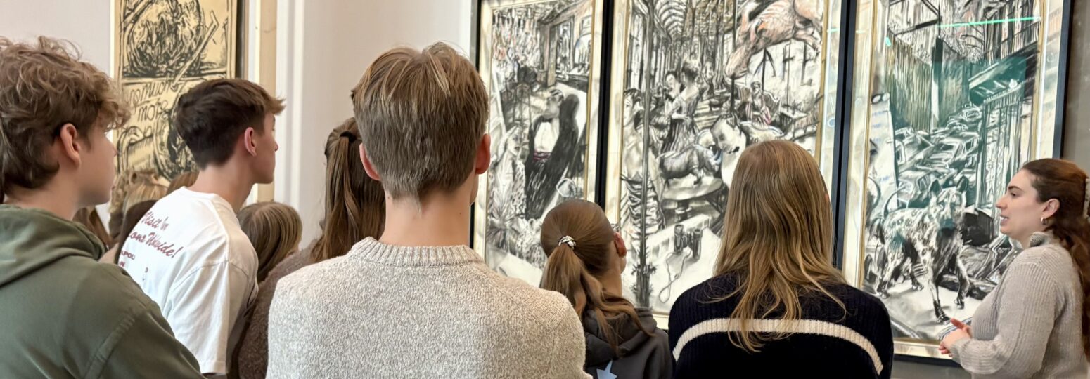Die Kunstkurse der Q1 besuchen am 8. Januar 2026 die Ausstellung eines der bedeutendsten zeitgenössischen Künstler, die William Kentridge selbst konzipiert hat anlässlich seines 70. Geburtstags. In einer Führung wird die multimediale Arbeit des Künstlers, der sich kritisch, zugleich aber auch sehr poetisch mit der Vergangenheit und Gegenwart Südafrikas auseinandersetzt, näher gebracht und Raum für Fragen gegeben. Die imposanten Werke im Original erleben zu können, bereichert die Auseinandersetzung mit den Werken des Künstlers im Unterricht und bietet tolle Anregungen für kreative Schaffensprozesse.
